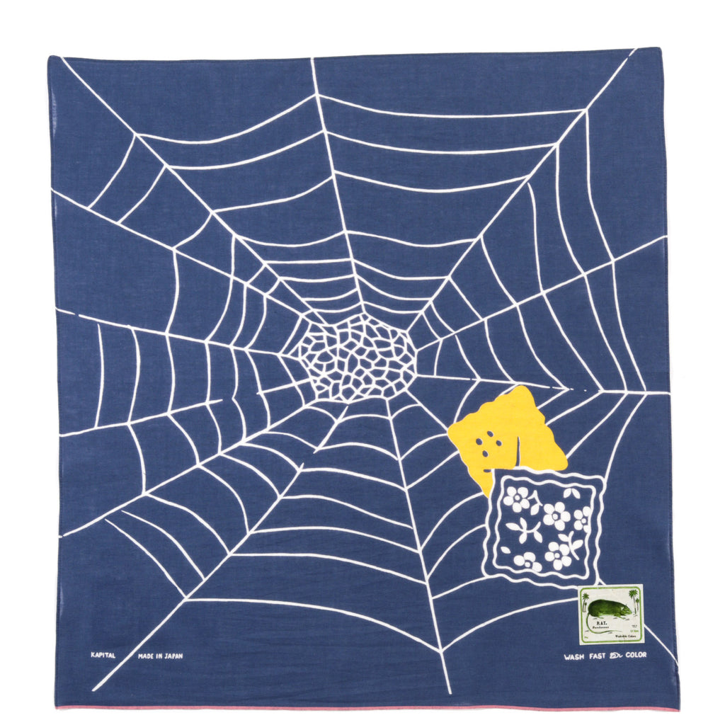 KAPITAL FASTCOLOR SELVEDGE BANDANA SPIDER PECKISH RAINBOWY NAVY