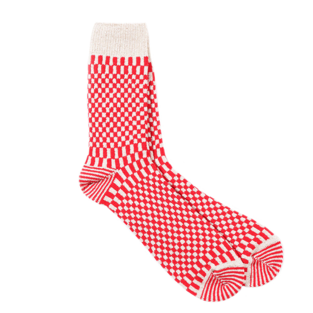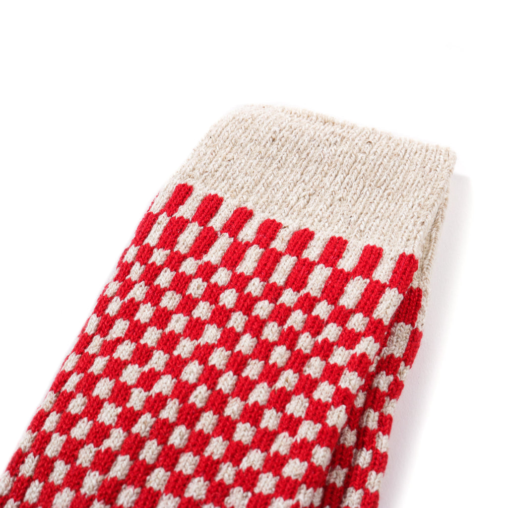 - CUSHIONY CHECKERBOARD PATTERN JACQUARD KNIT- SIZE LARGE: 27 - 29 CM (US MENS 9 - 12)- 41% COTTON, 41% ACRYLIC, 10% SILK, 6% NYLON, 2% POLYURETHANE- MADE IN JAPAN