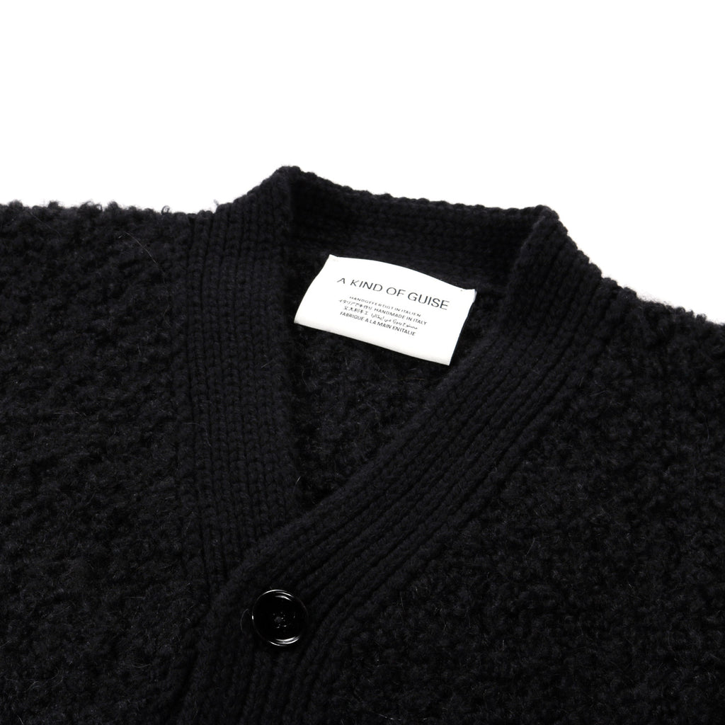 A KIND OF GUISE KHUDER KNIT CARDIGAN BLACK BOUCLE