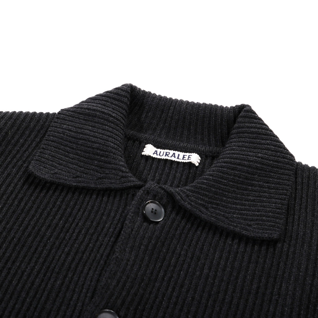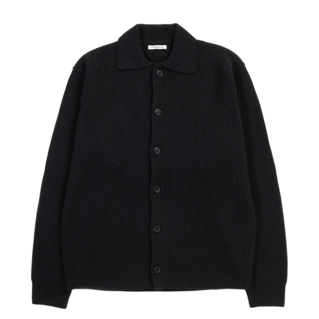 AURALEE SUPER FINE WOOL RIB KNIT SHIRT CARDIGAN BLACK