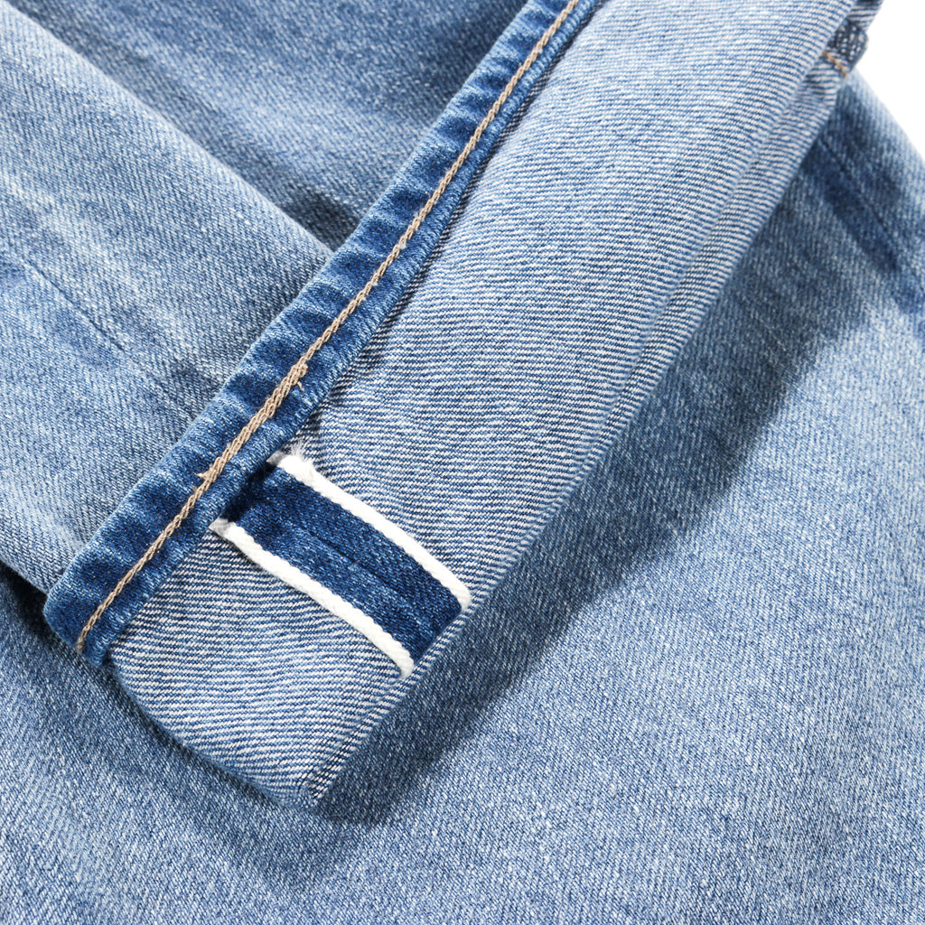 The fabric is original white edge 12oz selvedge denim, a material that can be worn year-round and is also used in phigvel's standard denim series. The item has a straight silhouette that falls straight from the knee to the hem.
