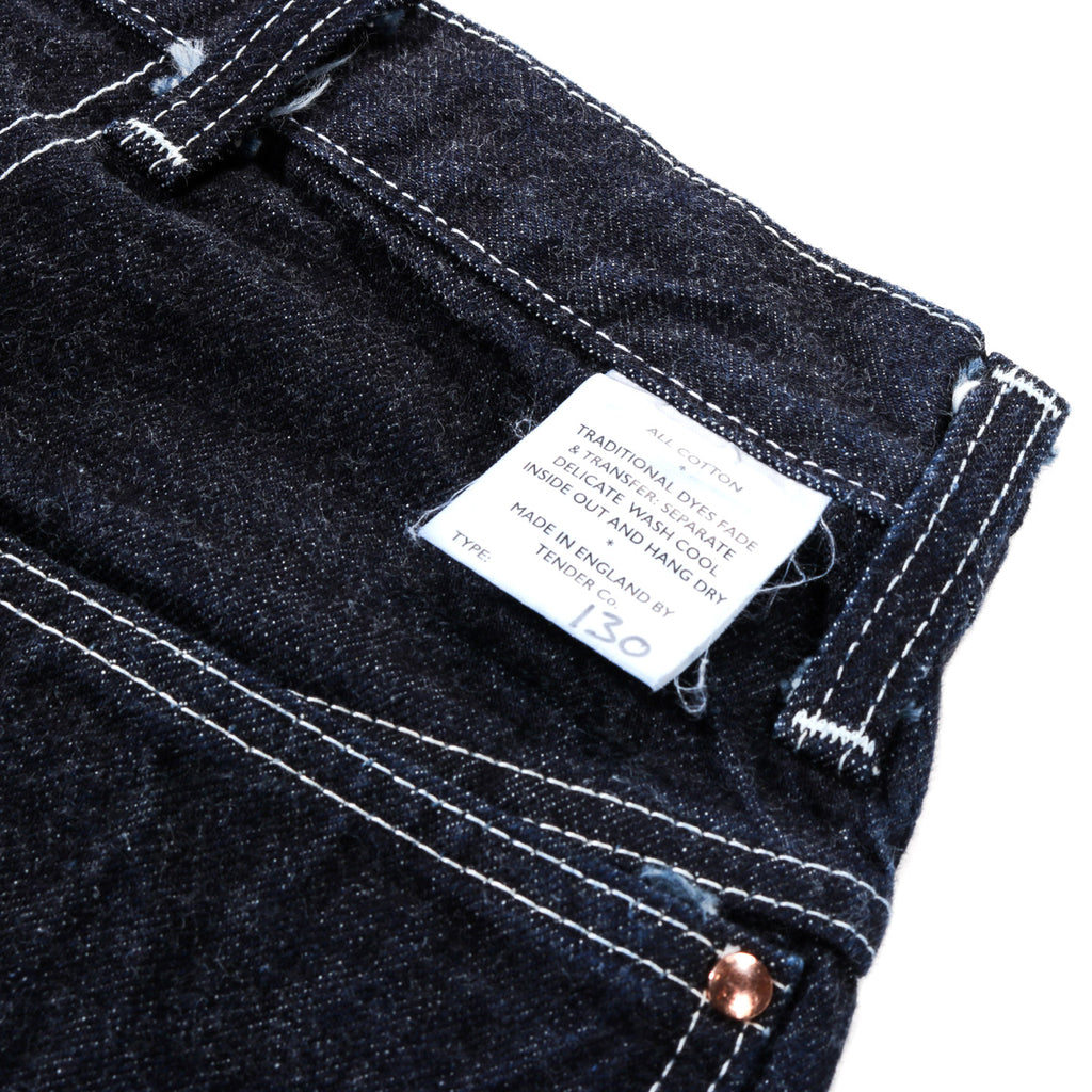 Tender’s 16oz blue-line selvage denim is custom-woven in Japan, then shipped to the UK loomstate, to be finished or cut and sewn directly.