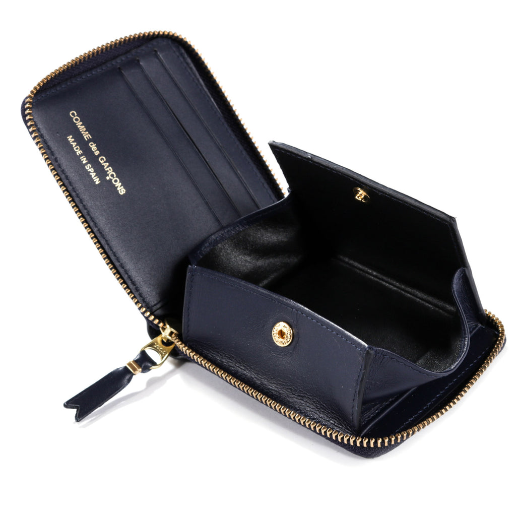 COMME DES GARCONS SA7100 CLASSIC LEATHER ZIP WALLET NAVY