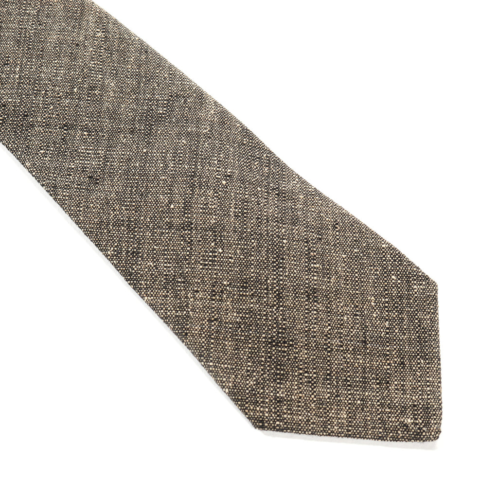 Our Legacy Tie in Deep Husk Soft Grain Weave. Produced in an Italian linen, silk and cotton blend fabric, this tie has a matte texture with a gentle gloss and a lightweight feel. It features a classic pointed end, measures 7 cm, and is fully lined.