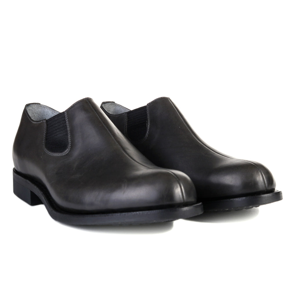 - BENCH MADE IN ASAKUSA, JAPAN- GOODYEAR WELT- CALFSKIN LEATHER- SPLIT SEAM- SIDE-GORE CONSTRUCTION- MANUFACTURED IN JAPAN BY PHIGVEL-MAKERS