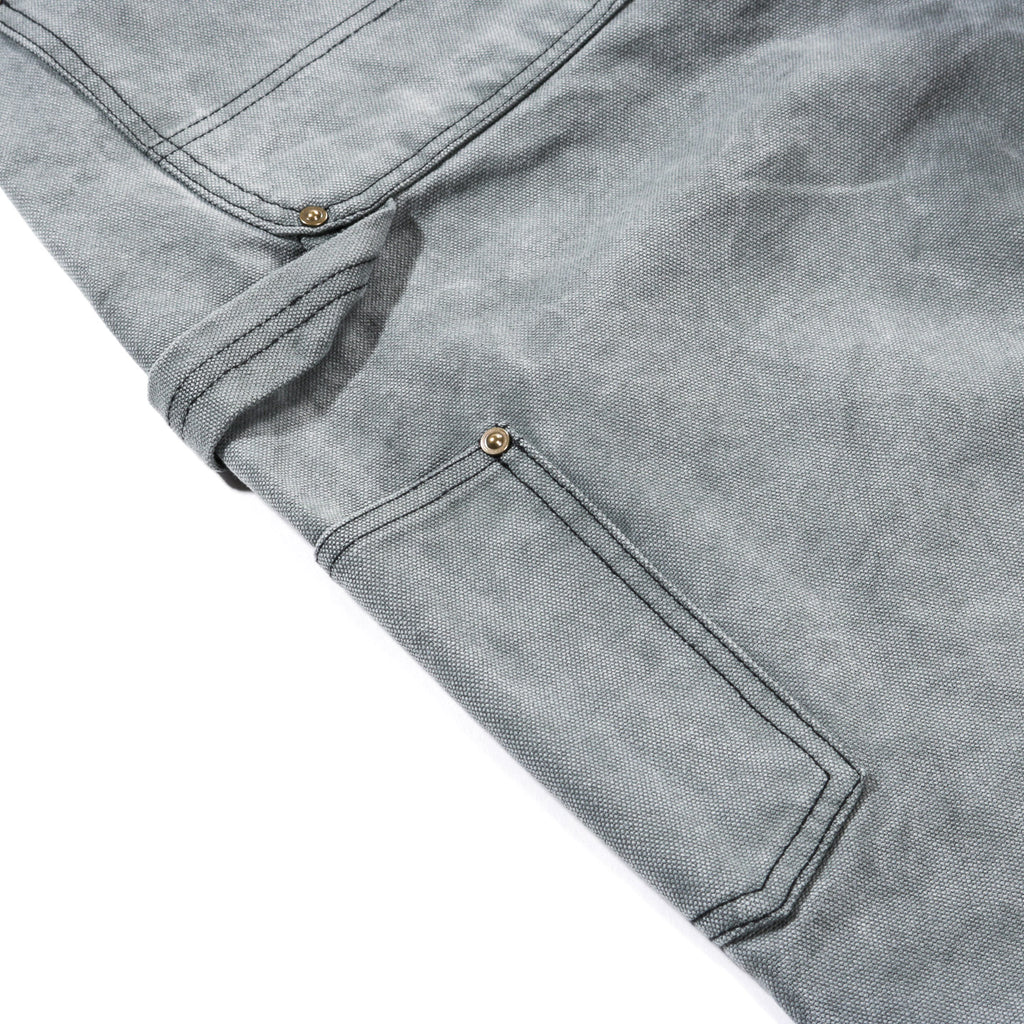 - Functional details such as knee patches, a hammer pocket, and a hammer loop