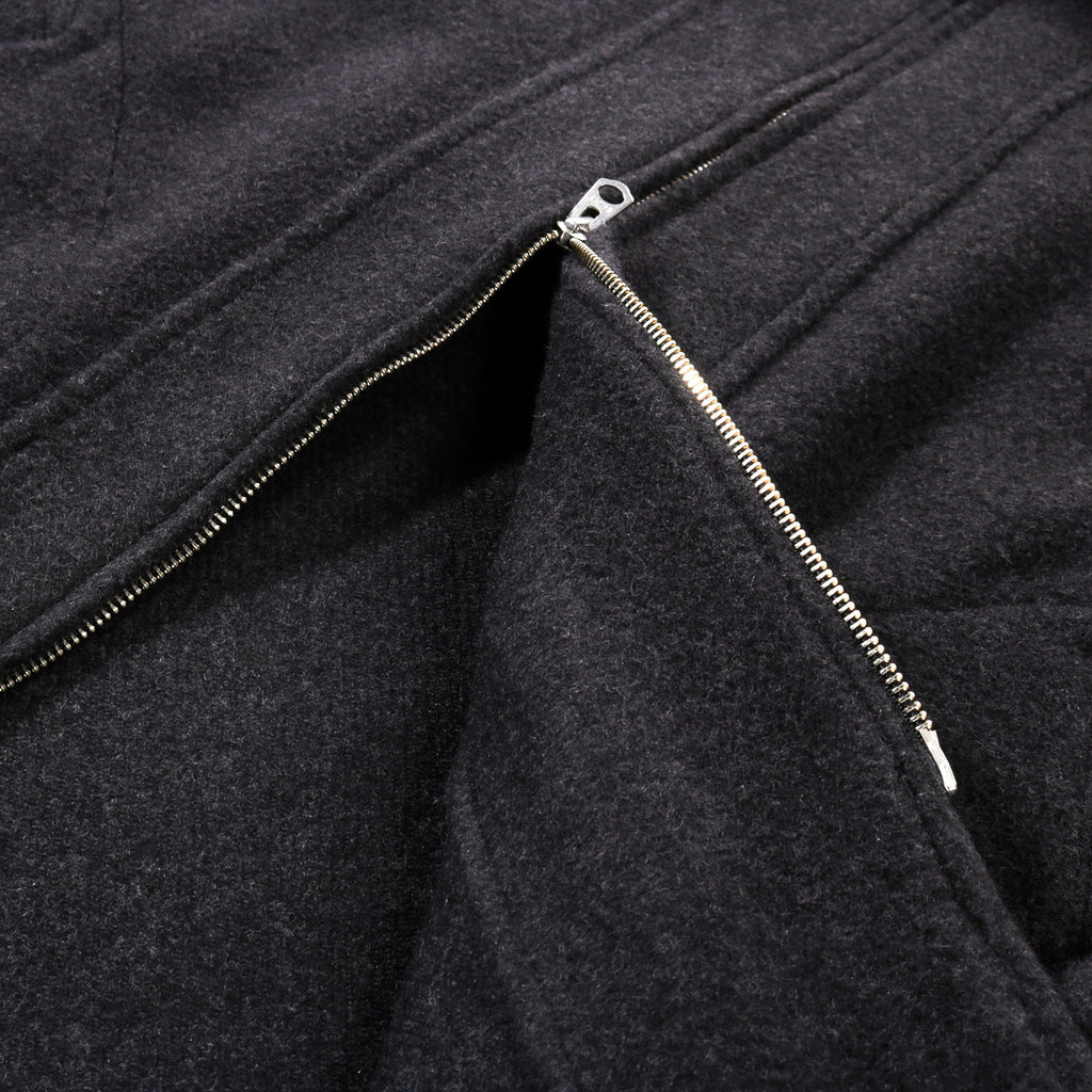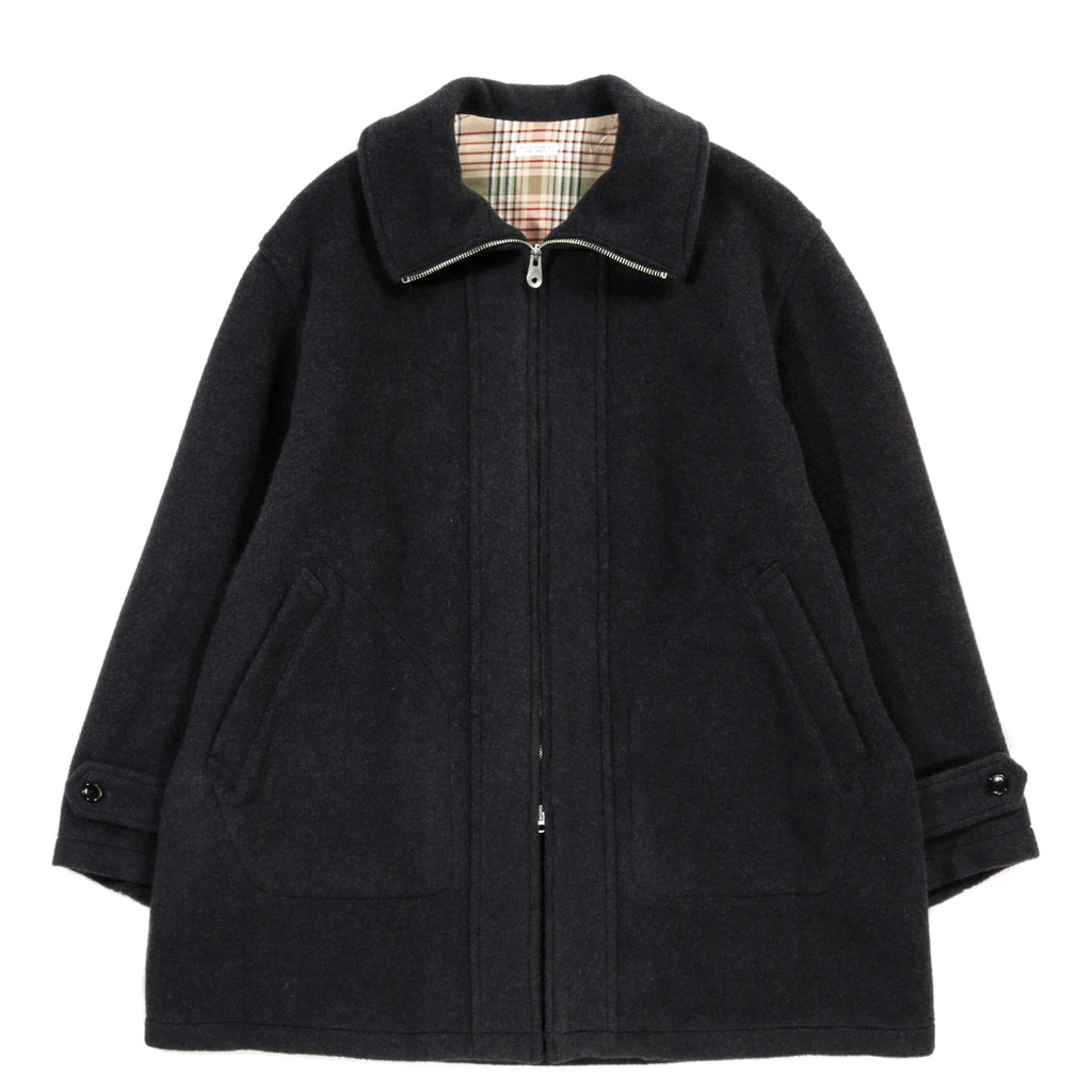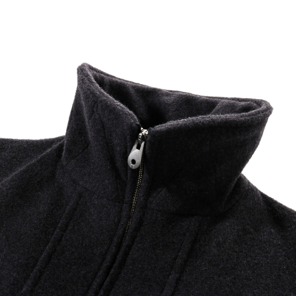 Made from a blanket wool material woven from a mix of wool cashmere and British sheep's wool, this hunting overcoat features a front zip and stand-up collar, and is designed to be worn loosely.