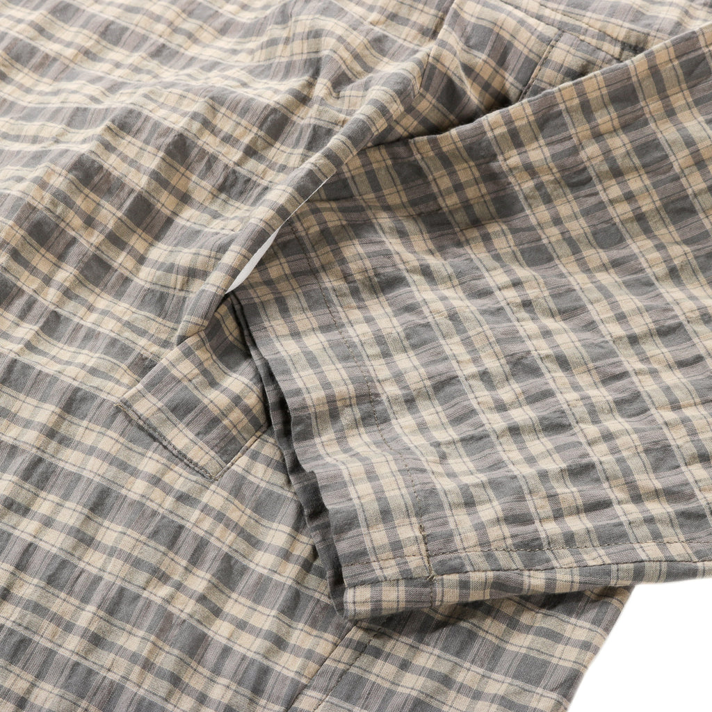 Made in a Japanese organic cotton, the fabric has a seersucker texture that complements the plaid pattern. Lightweight and breathable, this everyday top can be worn on its own or as an outerwear piece.
