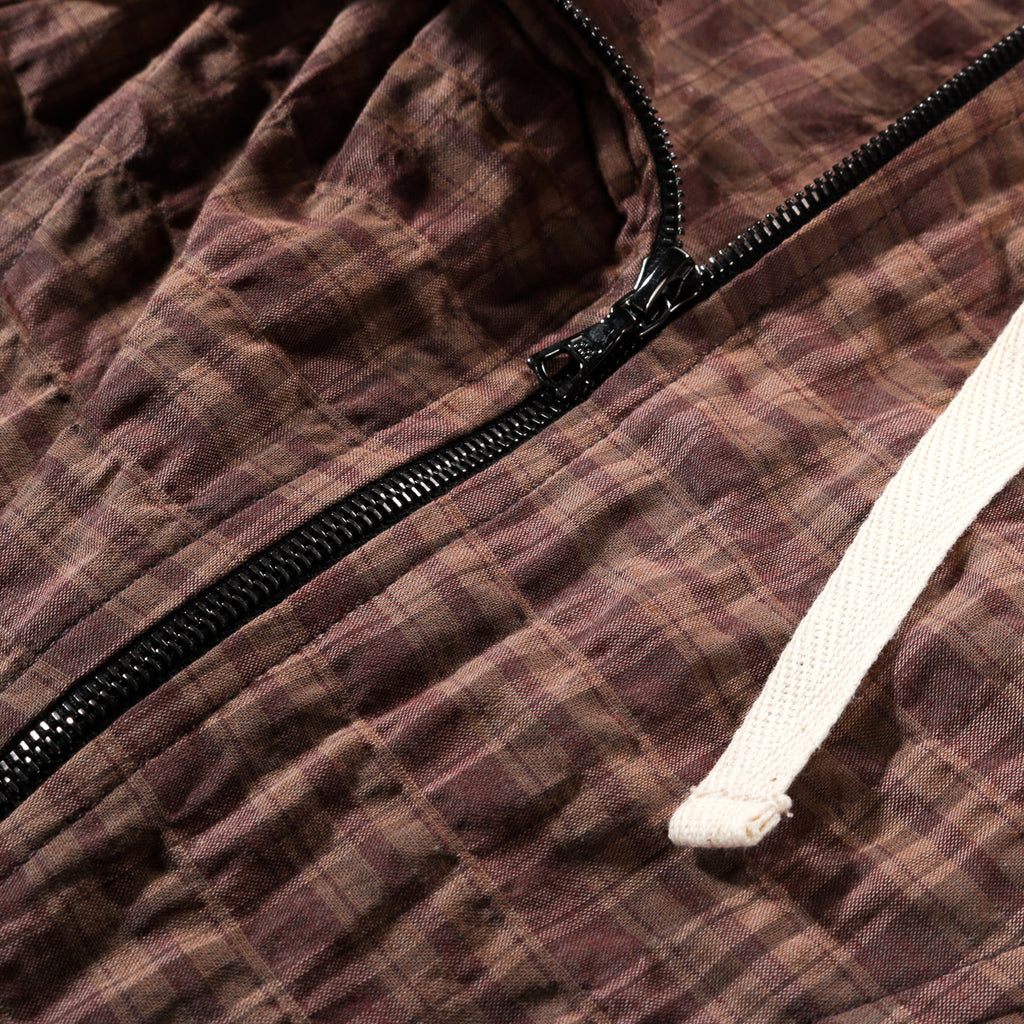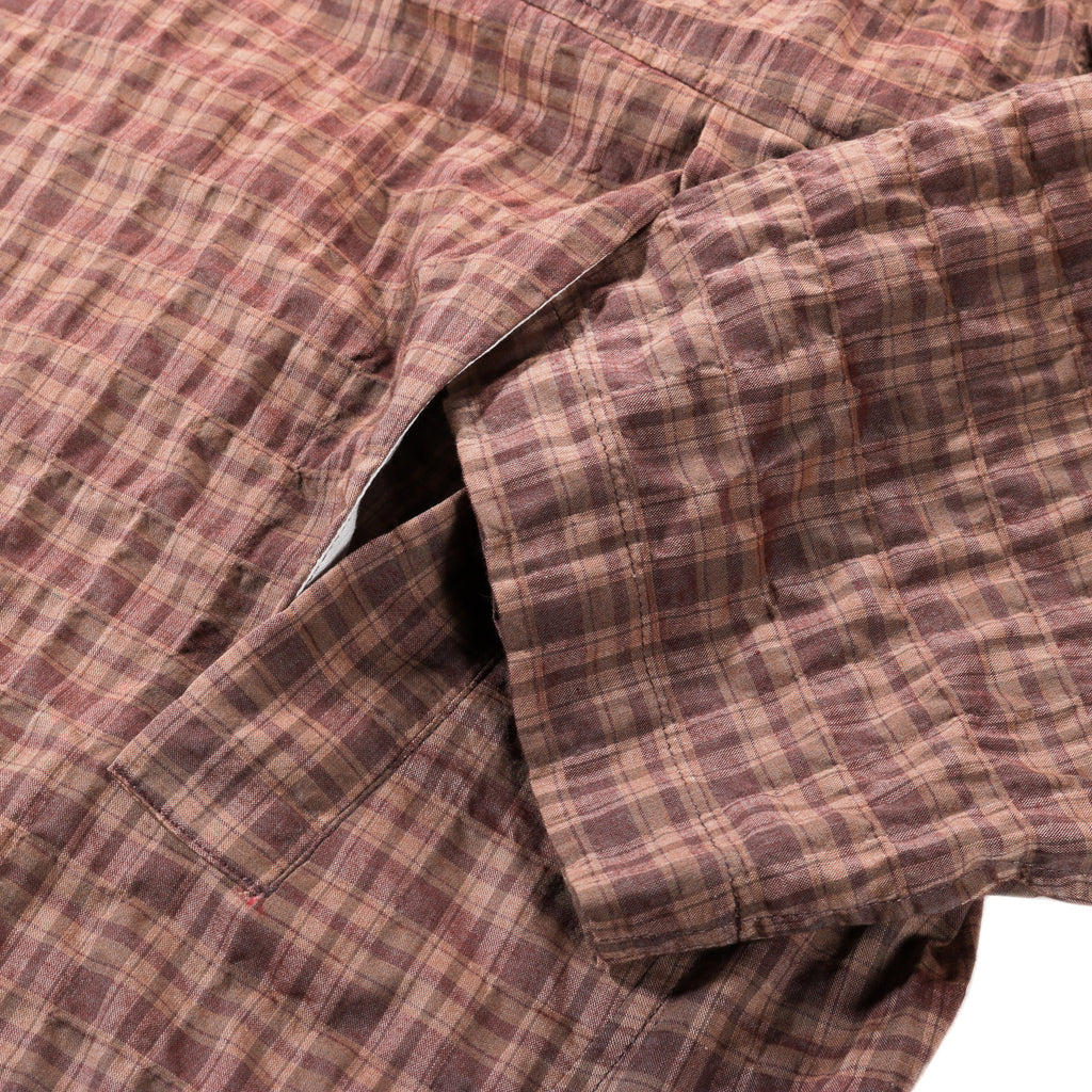 Made in a Japanese organic cotton, the fabric has a seersucker texture that complements the plaid pattern. Lightweight and breathable, this everyday top can be worn on its own or as an outerwear piece.